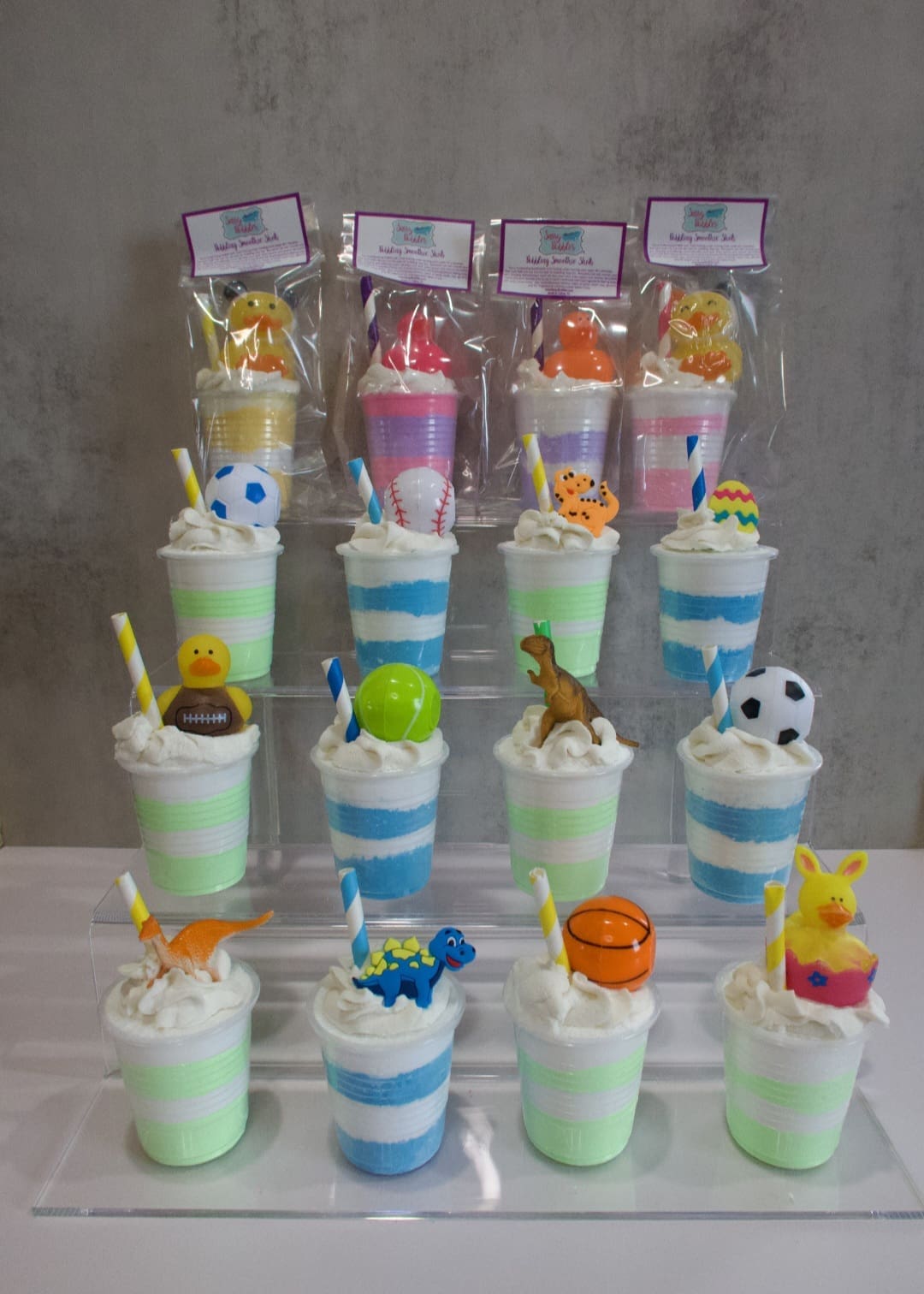 For a moisturizing bubble bath, hold frosting from Sassy Bubbles Bubbling Smoothie Shot under running warm water till it dissolves. Pour bath mix from cup in and out of the water till it dissolves, for bubbling, fizzy fun. Wonderful oils will nourish your skin, amazing aromatherapy scent will relax your soul. ( Please note, decorative charms may be a choking hazard. Use caution, and remove decorative charms, and keep away from small children, prior to use.) Custom handmade with lots of creative love.
